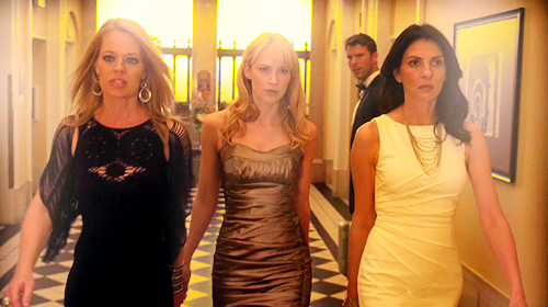 Downstairs in the ballroom, Parker enters with her date. She keeps up a half-hearted attempt at appearing knowledgeable about cats while watching Peggy, ahead of them in line and oblivious to Parker's presence, struggle with the doorman over her lack of invitation. After Peggy finally rushes off after an incompetent server, Parker and Mattingly enter the ballroom without incident. Parker leaves him to mingle while she contacts Sophie and Tara, who are now in line to the ballroom. Sophie laughs at Tara's proposed grift, that she pose as a secret service agent with Sophie as her deputy. Instead Sophie drapes herself over the nearest man and whispers in his ear that "the agency" sent her. Both ruses work perfectly and the women walk easily into the ballroom. They join Parker, who has just been spotted and confronted by an angry Peggy. Furious over Parker apparently "stealing" her date, Peggy questions their friendship before storming away.